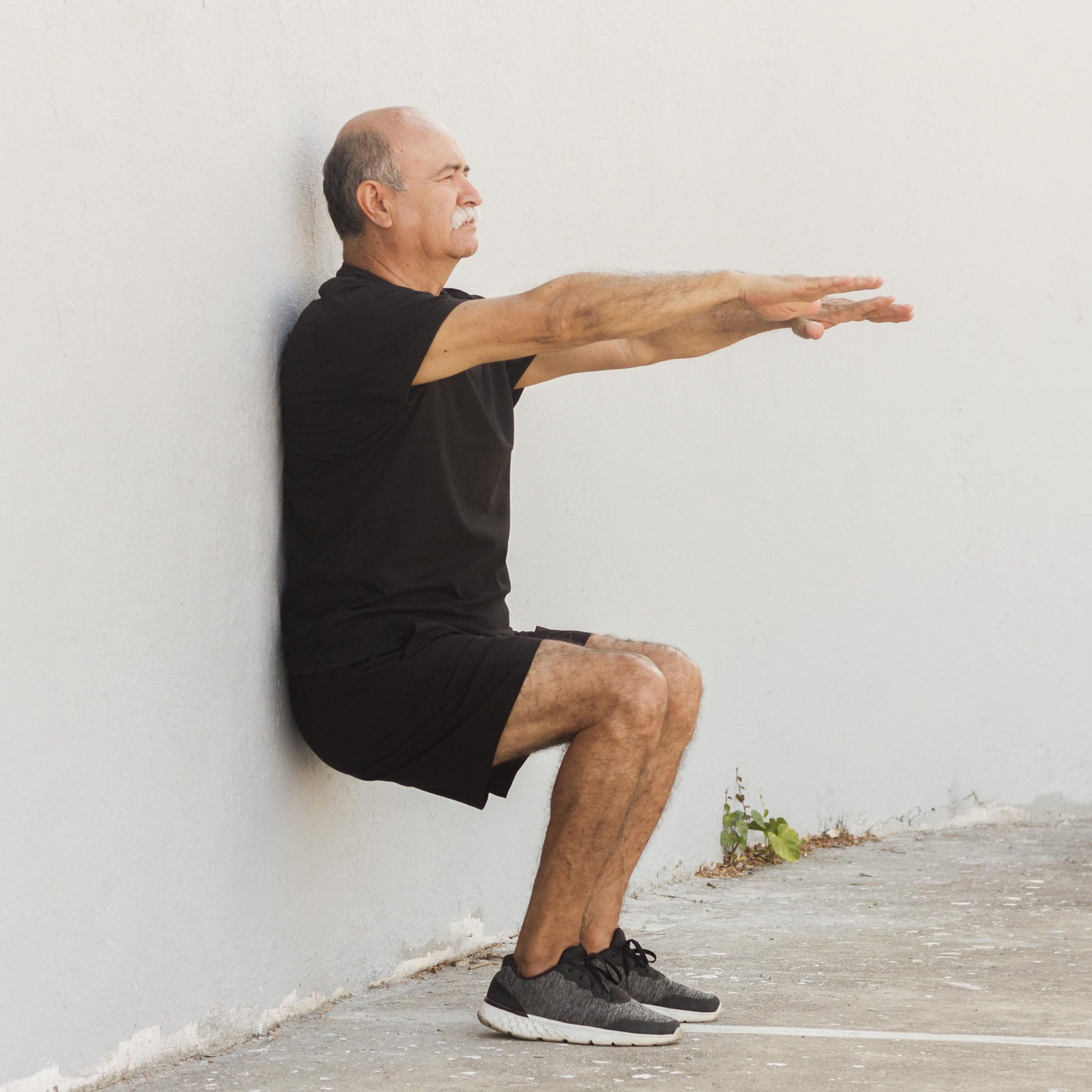- Lean against a wall and slide down until your knees are at a 90-degree angle.